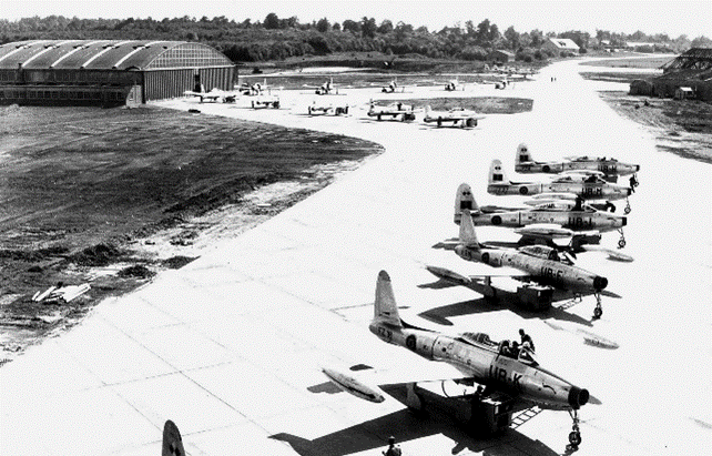 Depuis la fin de la guerre, la plupart des pays européens mettent l’accent sur la défense aérienne, et ne possèdent donc quasi aucune capacité offensive. Avec le Thunderjet, la Belgique se dote, comme d’autres nations de l’OTAN, d’une réelle capacité d’attaque au sol et contribue ainsi à dissuader toute invasion des troupes soviétiques. Avec les exercices de l’OTAN en Belgique ou en Allemagne, les activités aériennes de la base sont très soutenues au début des années 50.