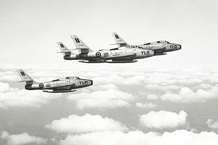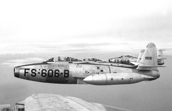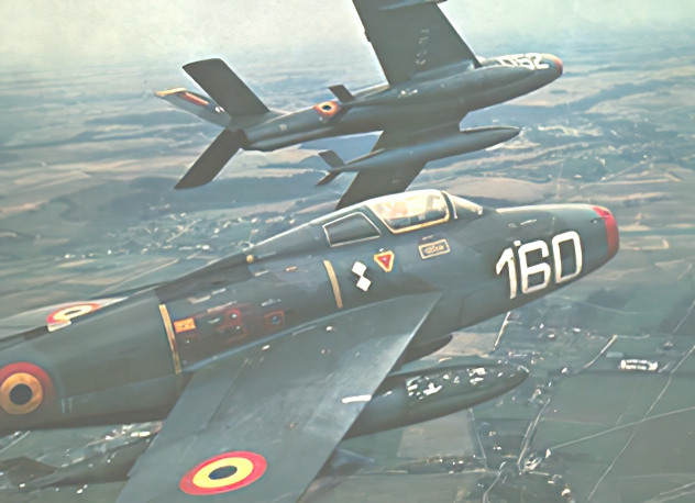La guerre de Corée a montré que les avions à ailes droites sont obsolètes et, comme d'autres pays de l'OTAN, la Belgique  décide de remplacer ses F-84G Thunderjet entre 1955 et 1957 par 197 F-84F Thunderstreak via le programme d'assistance de défense mutuelle américain. Le 17 août 1955, la Force Aérienne Belge devient supersonique pour la première fois avec 2 appareils de la 3ème  Escadrille du 2ème   Wing. Les F-84F resteront 17 ans en service sur la base de Florennes.