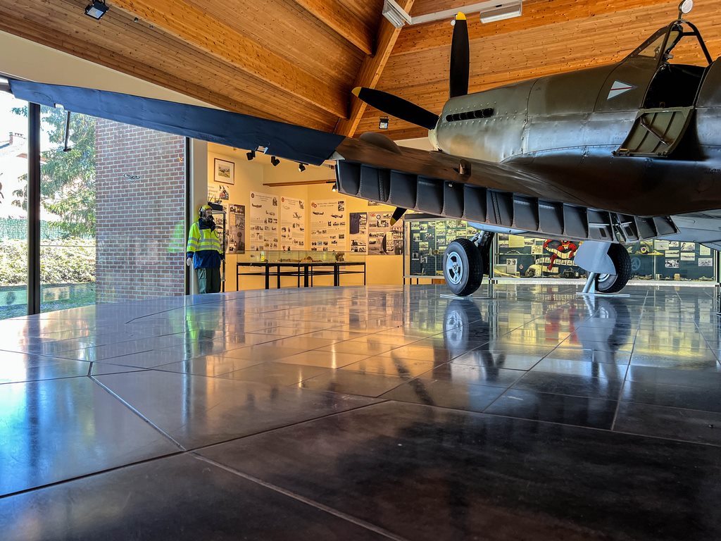 Cet écrin renferme un véritable bijou, un Spitfire MkXIV qui a volé au 2e Wing à ses débuts et qui a été restauré jusque dans les moindres détails par un groupe de bénévoles passionnés. 12000 heures de travail étalées sur 6 ans ont été nécessaires pour cette superbe restauration.